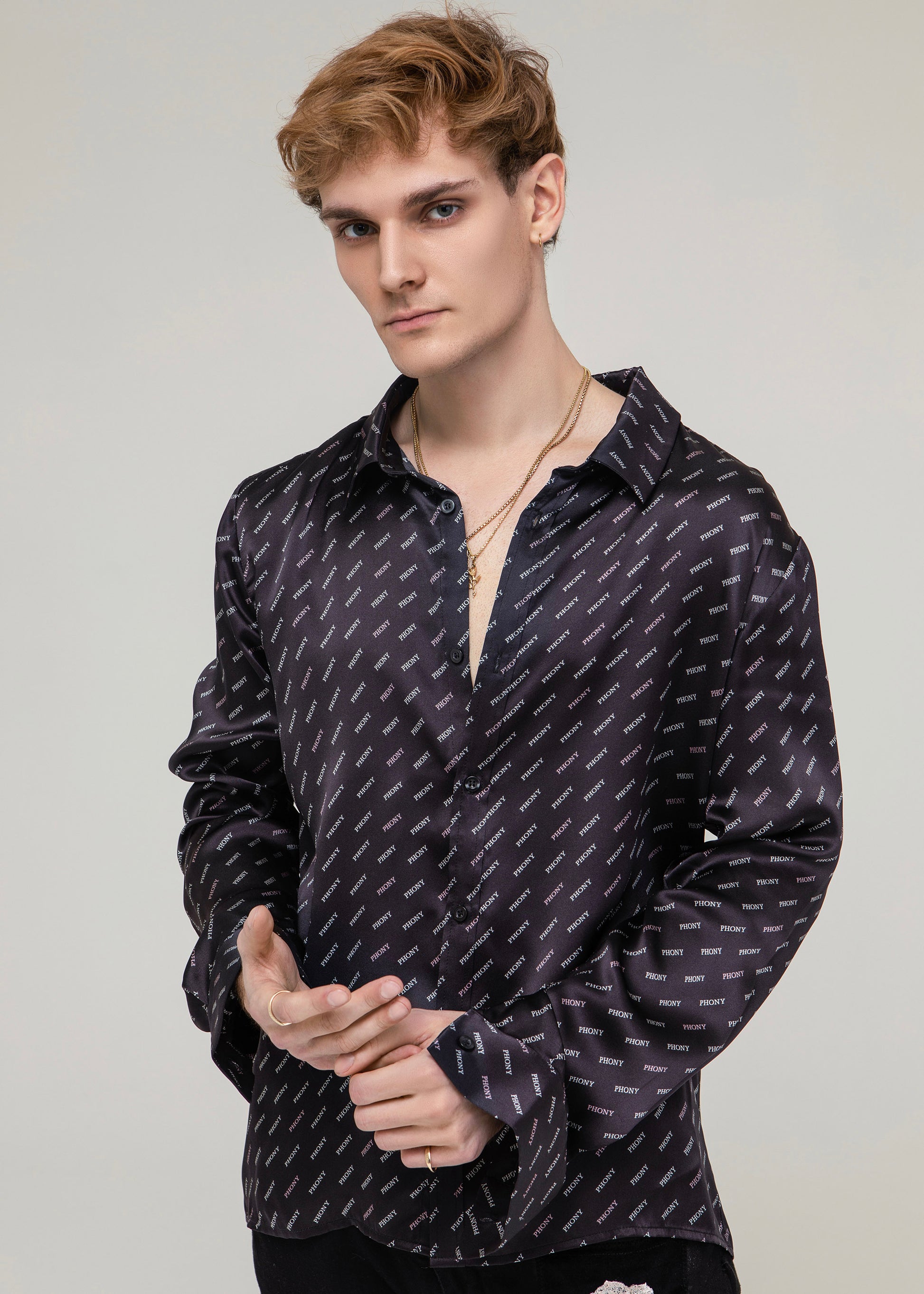 Black silk with PHONY print